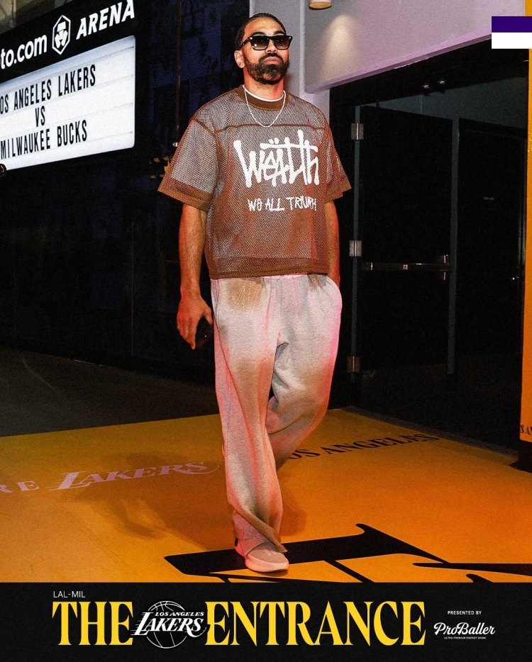 2025-03-21 10:01:02湖人众将入场穿搭:文森特墨镜配项链 布朗尼蜘蛛连帽衫