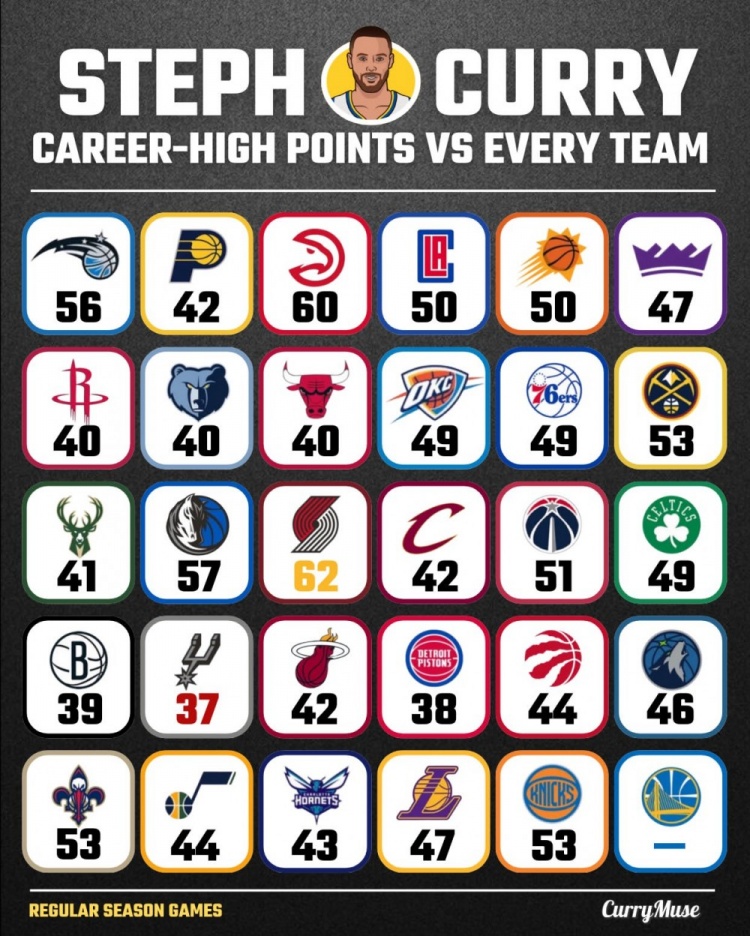 2025-03-01 04:10:23库里对阵29队最高分:9队被抡下50+ 开拓者成最大受害者
