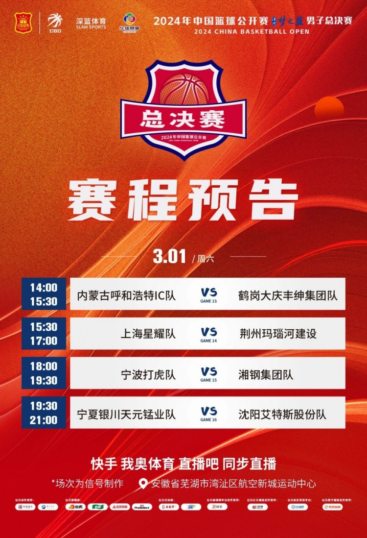 2月28日,2024年中国篮球公开赛洋河梦之蓝男子总决赛进入到第三个比赛日。宁波打虎、内蒙古IC、宁夏天元锰业、上海星耀在本轮胜出。经过三轮比拼,小组赛全部结束,明日将进行淘汰赛。