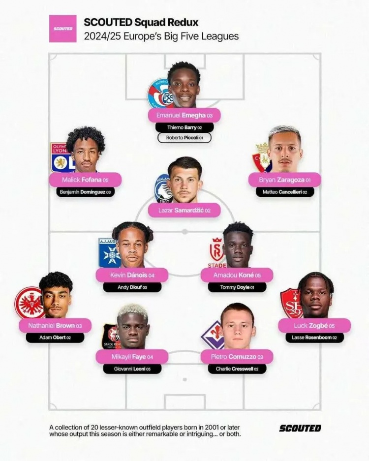 2025-03-09 15:46:57Scouted评选五大联赛值得关注的U23球员:欧塞尔的达努瓦入选