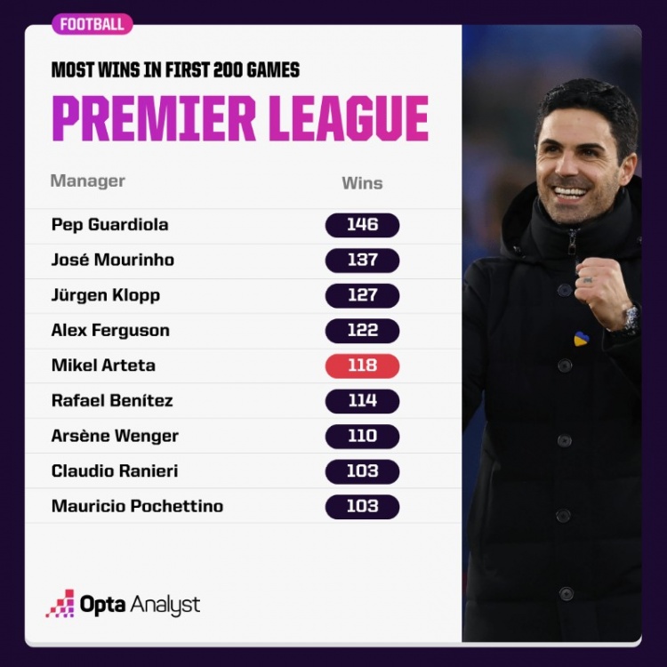 2025-03-10 06:10:48英超主帅前200场胜率榜前五:瓜帅、穆帅、渣叔、弗爵、塔帅