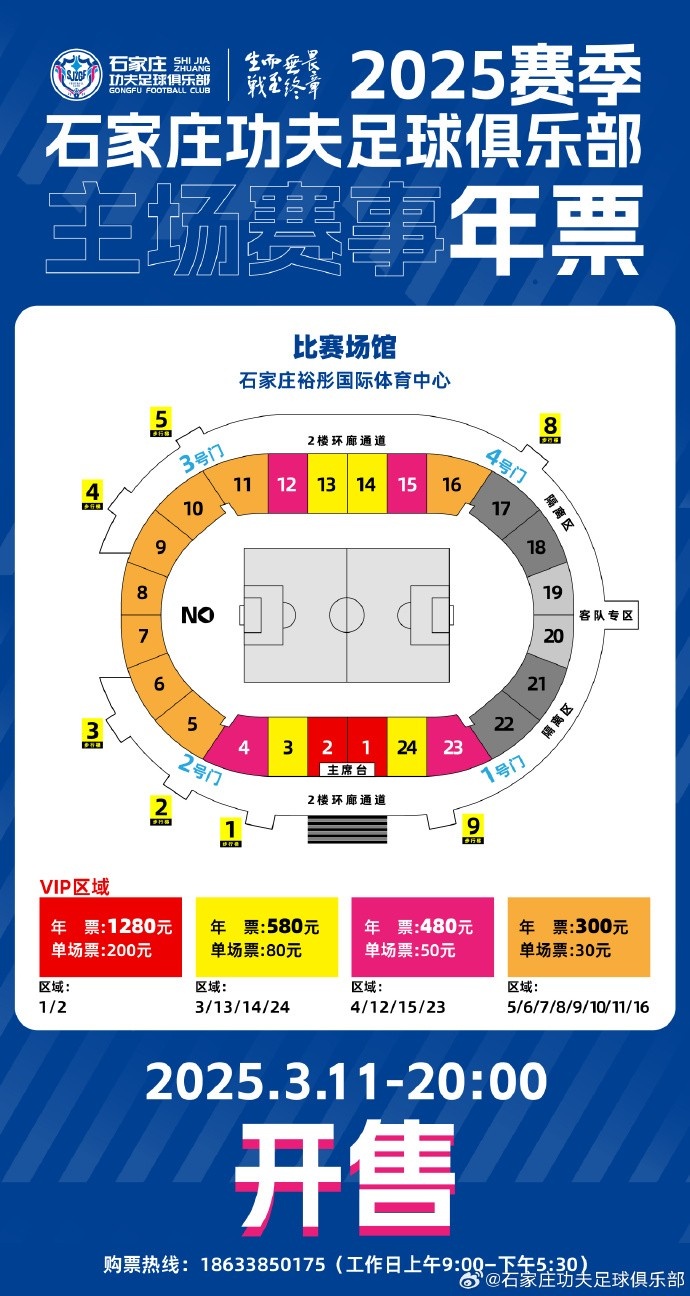 2025-03-11 14:53:12年票预告|3月11日晚20:00 石家庄功夫2025赛季主场年票开售