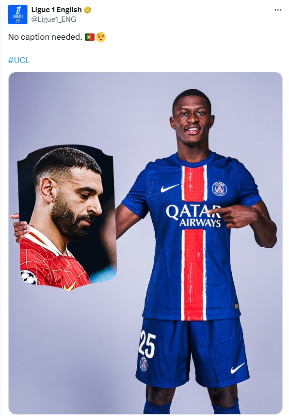 2025-03-12 13:06:39拿捏!法甲官推晒照:努诺-门德斯手持萨拉赫卡片