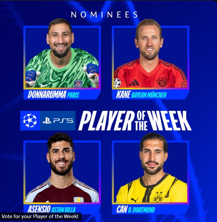 2025-03-13 12:09:20欧冠官方本轮最佳球员候选:凯恩&多纳鲁马&阿森西奥&埃姆雷-詹
