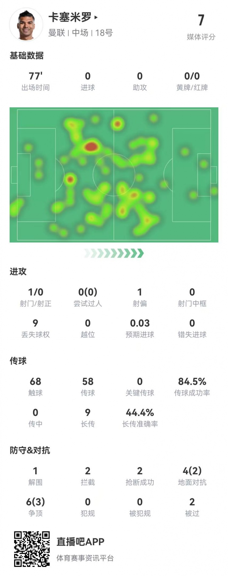 2025-03-14 07:41:36卡塞米罗本场11对抗6成功 3抢断2拦截+4成功长传 获评7.0分