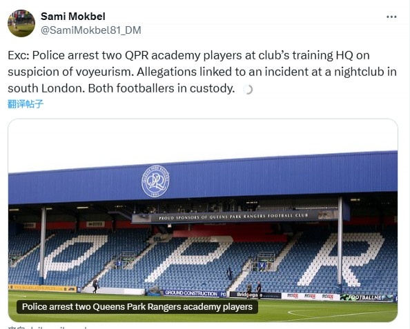 2025-02-28 16:00:52邮报:英冠QPR两名球员训练时被警方带走,涉嫌偷窥罪
