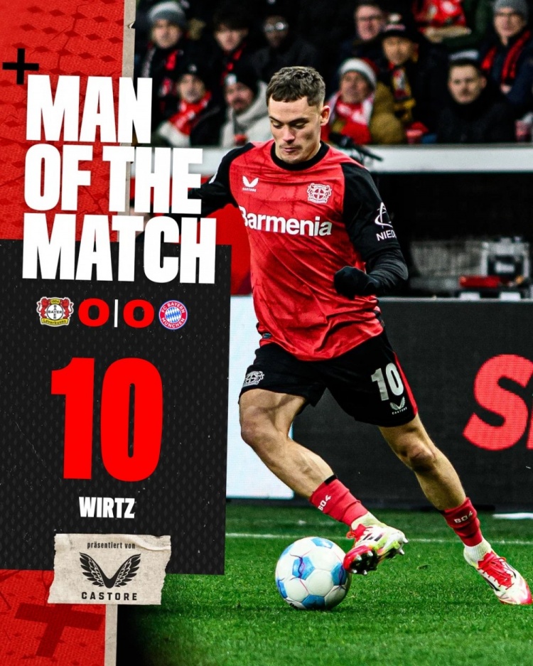2025-02-17 17:35:576过人&8对抗成功✨勒沃库森官方:维尔茨当选0-0拜仁队内最佳
