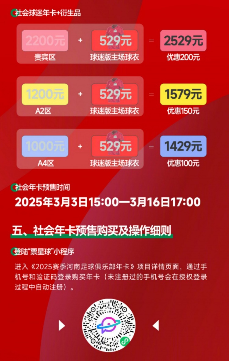 2025-03-03 17:02:022025赛季河南足球俱乐部年卡预售公告