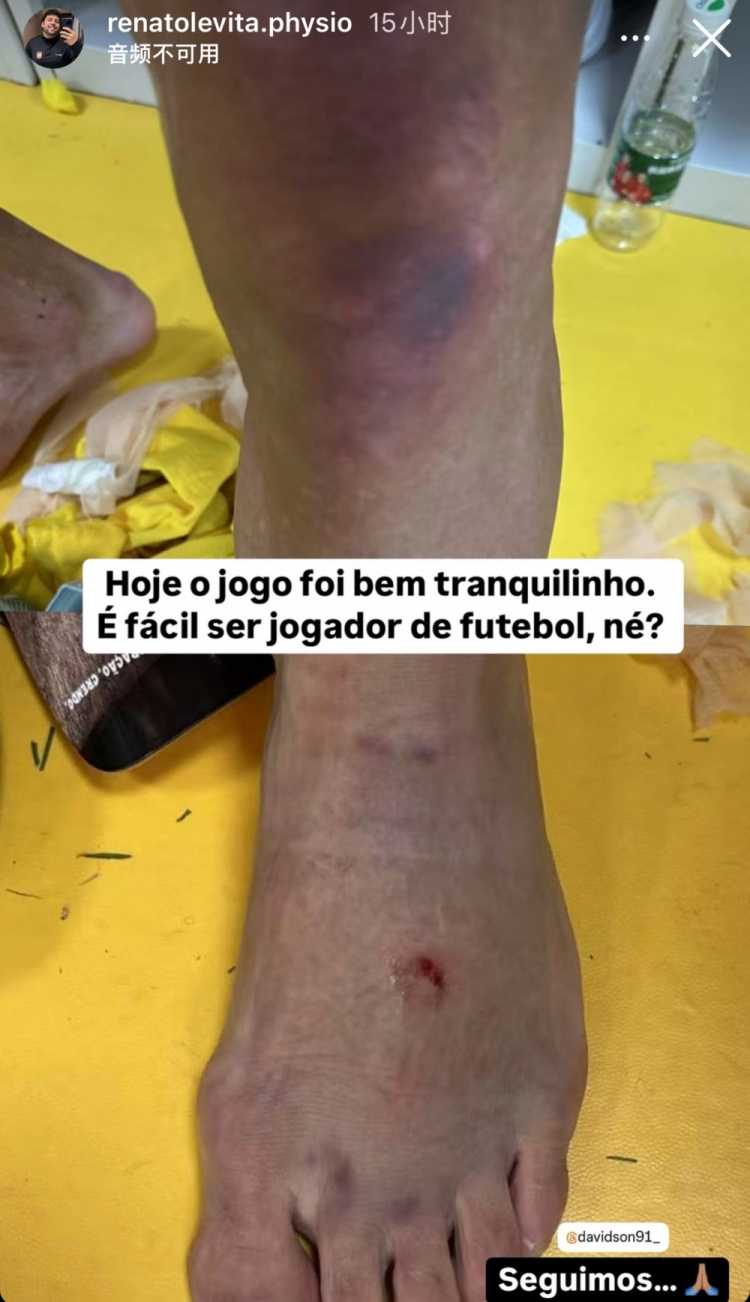 2025-03-04 12:27:53西海岸理疗师晒戴维森腿部伤势照:当足球运动员很容易,对吧?